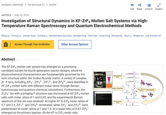林明博士以“高温拉曼光谱和量子电化学方法对KF-ZrF4熔盐体系结构动力学研究为主题分了最新发表的《Inorganic Chemistry》期刊上的学术论文研究内容及相关结论。
