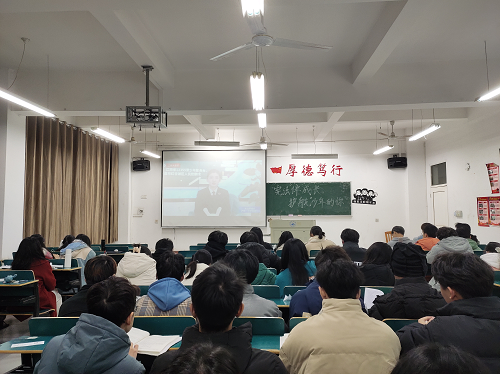 为学习贯彻党的二十大精神,迎接我国第九个国家宪法日,促进同学们对宪法的了解,大力弘扬宪法精神,12月4日晚,经济学院于义丰楼组织开展了国家宪法日学习活动。本次活动由各班团支书主讲,经济学院全体同学参加。