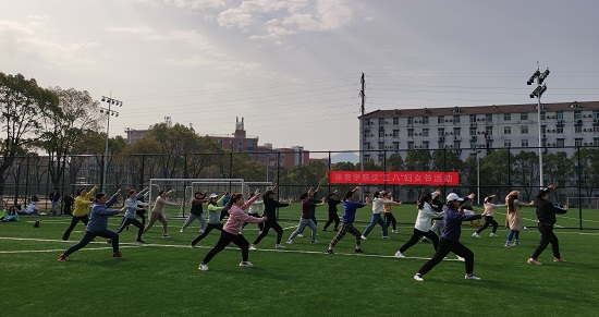 本次太极拳比赛,结合本学期的教学任务,以“健康的女人最美丽”为主题。让女教职工享受到作为女性的幸福和快乐,感受到学院对女教职工的关怀和爱护。