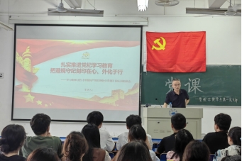 6月19日,管理学院院长许松涛以“扎实推进党纪学习教育 把遵规守纪刻印在心、外化于行”为主题,结合学生党建工作实际,为管理学院学生第一党支部的党员同志们上了一堂主题鲜明、重点突出、内容深刻的党纪学习教育专题党课。