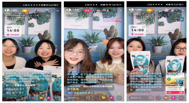 根据技能和兴趣点,教学团队已组建了12支学生志愿服务队,于2023年9月正式参与到了签约帮扶企业的实际运营和日常管理中。先后对国家级一村一品的瓜蒌籽进行卖点挖掘,对国家级生态农场的高山茶进行文化挖掘,对传统千层底老布鞋进行工艺推广。截止目前,共完成了180余条原创短视频的拍摄、剪辑和发布,通过“九院助农团”、“彭蠡茶记”、“布鞋记忆坊”等多个抖音直播账号共完成了50多场直播带货。