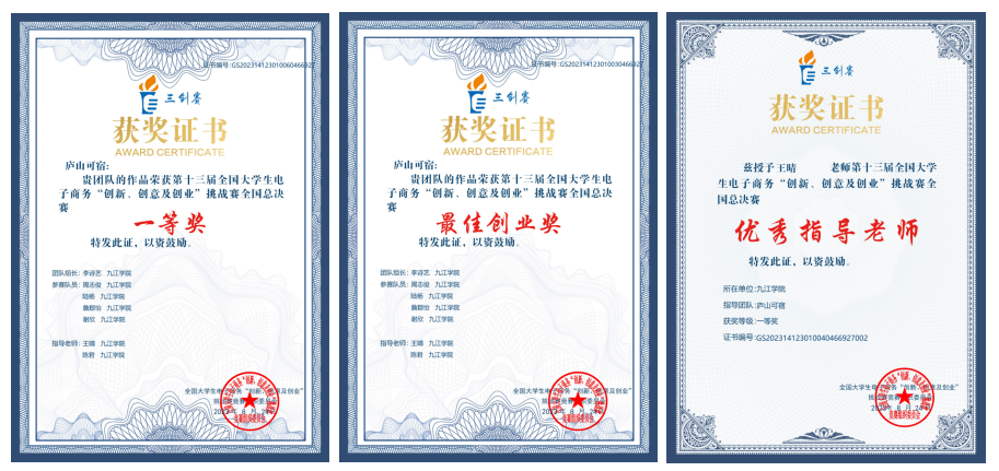教学团队指导的“庐山可宿”队以打造一站式旅游服务平台为主题参与学科竞赛,获得了2023年大学生电子商务三创赛全国总决赛的一等奖和最佳创业奖;“做大做强小分队”以新媒体+电商重拾非遗布鞋为主题参与学科竞赛,获得了2024年大学生电子商务三创赛省级特等奖,已晋级7月底的全国总决赛。由此,逐渐摸索出了“利用专业办专业,办好产业促专业”的校企合作模式,有效解决了地方企业电商运营和新媒体营销中的实际难题。