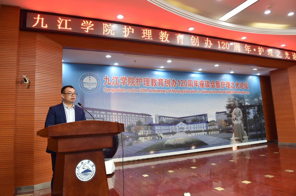 逸夫图书馆报告厅隆重举行。副校长杨耀防、校纪委书记李广欣,九江市卫健委副主任郑瑶出席开幕式,部分职能部门领导,老同志代表、校友代表及护理学院师生120余人参加了开幕式。开幕式由护理学院党委书记闫来英主持。