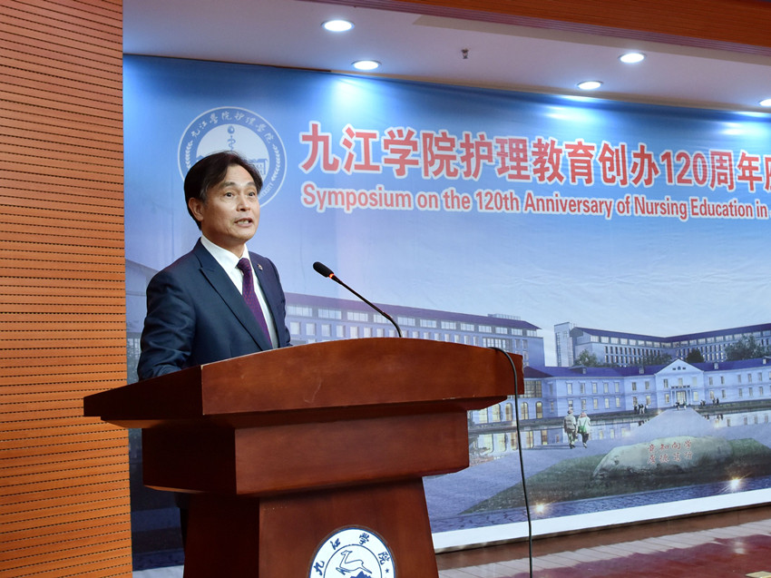 护理教育创办120周年的历史做了简要回顾,对长期以来关心、支持、帮助学校护理教育的各级领导、先贤先辈、护理界专家同仁、海内外校友表示衷心感谢和崇高敬意。他指出,历史积淀让护理学院更从容,改革发展的新成绩让护理学院更自信。回顾历史,我们的护理教育之路,是一条大爱无疆、坚持正确方向之路;是一条又红又专、坚持立德树人之路;是一条行胜于言、坚持生命至上之路。展望未来,他期望护理学院要不忘初心、牢记使命,立足新时代,放眼全世界,抓住机遇、勇攀高峰,再创百年护理辉煌,再现护理百年荣光。