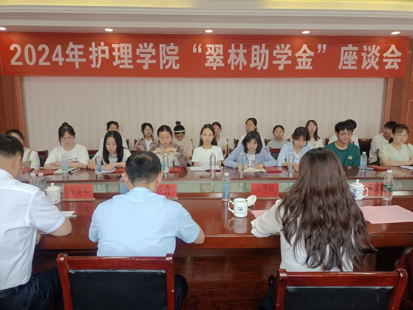会议伊始,郭青对余翠林董事长的到来表示欢迎,向大家介绍了余翠林董事长的个人发展和成就,并宣读了2024年护理学院“翠林助学金”获得者名单。随后,余翠林董事长为受助学生颁发助学金证书。