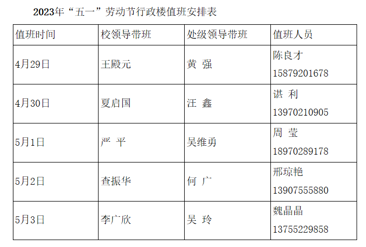 根据《国务院办公厅关于2023年部分节假日安排的通知》(国办发明电〔2022〕16号)精神,结合我校实际,现将“五一”劳动节放假的具体安排和有关事项通知如下: