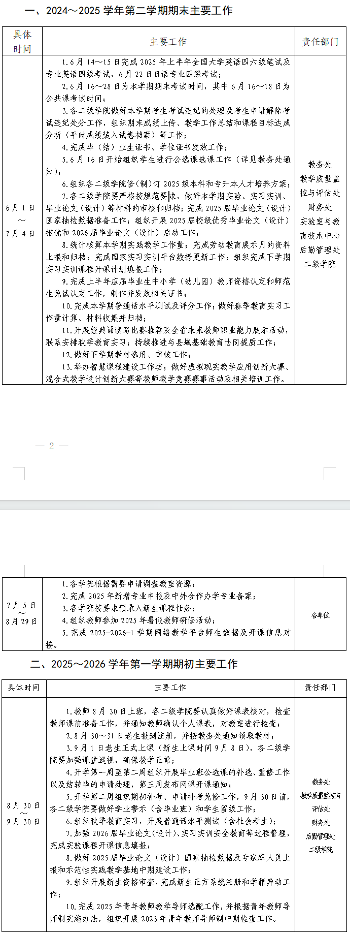 附件:2024~2025学年第二学期期末和2025~2026学年第 一学期期初教学工作安排
