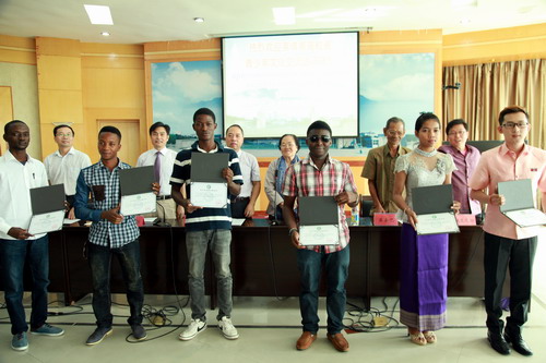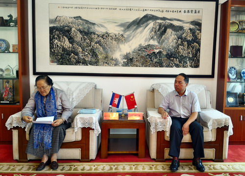 致辞后,甘筱青校长与克罗提达院士为2015年孔子学院奖学金生颁发证书,并共同主持第四届柬埔寨语培训班开班仪式。柬埔寨奖学金生和柬埔寨培训班学生代表分别发言。克罗提达院士还给