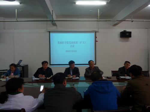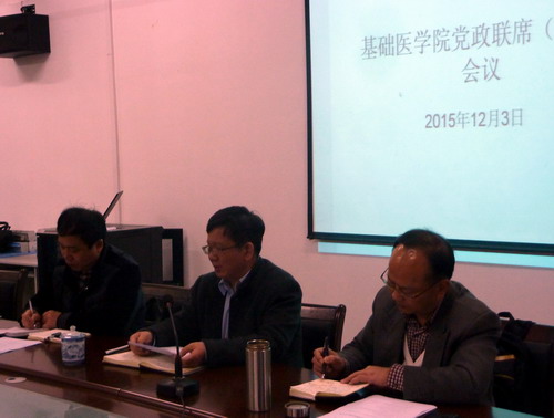 基础医学院的亮点与收获及问题和困难的报告》、《关于完善和增加基础医学院职称评审的相关内容》、《基础医学院学生党员发展基本要求》等三个议题进行了逐一的讨论,特别是对教育部专家对我校临床专业认证中提出的意见和建议提出了本部门的解决建议,同时与会人员又围绕郑书记的讲话精神,结合各自教研室和科室的实际,展开了热烈的讨论,大家一致认为学院在下一步规划和工作中应当积极响应学校党委的号召,发扬本院科研优势,完善存在的不足,努力创造“教学剩余”,其首要任务是要加强师资队伍建设,抓紧人才引进力度,完善各学科专业的教师梯队建设,使我院教师从繁重的教学中解脱出来,有更多的时间和精力进修培训、实践创新,更多地开展教学改革和科研实验。
