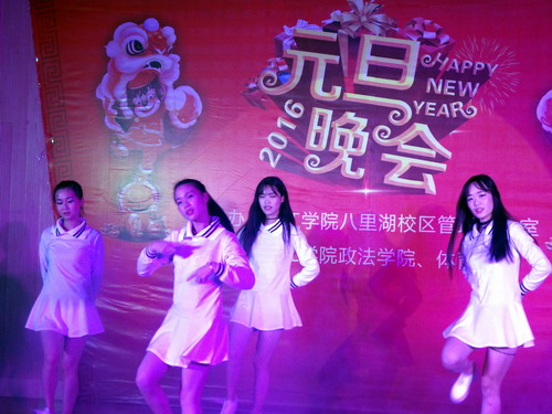 春风传喜讯、金猴踏歌来。12月22日晚七点,八里湖校区报告厅张灯结彩,一片祥和喜庆的景象。由八里湖校区管理办公室主办,体育学院、政法学院协办的2016年元旦迎新晚会在此盛大开幕。副校长陶春元出席晚会。校党委宣传部部长冯健、学生处处长刘平,八里湖校区管理办公室、体育学院、政法学院、八里湖新区公安分局的党政领导与八里湖校区师生欢聚一堂,一同观看了这场精彩的晚会。