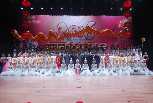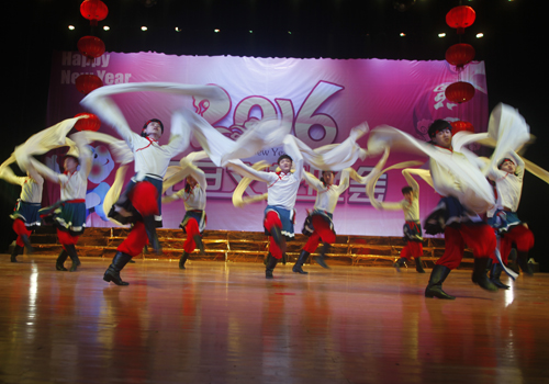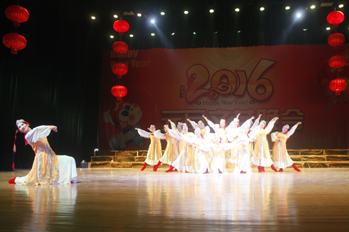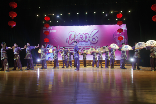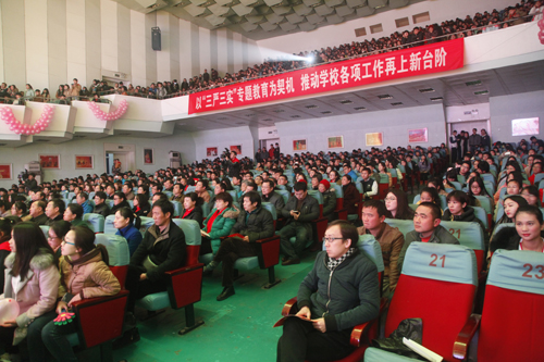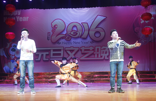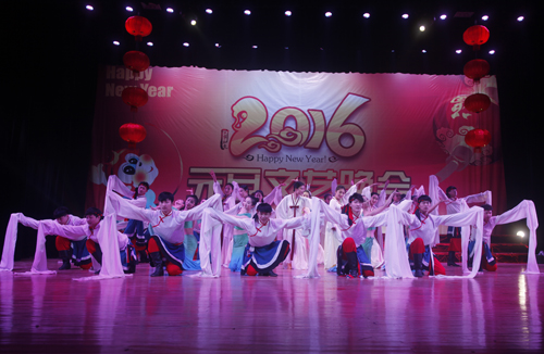 2016年元旦晚会在这里隆重上演。校领导郑翔、甘筱青、吴桃娥、纪岗昌、王万山、魏立平、杨耀防与全校师生一起,共同观看了精彩的文艺演出,回顾挥手而别的2015年,展望即将到来的2016年。