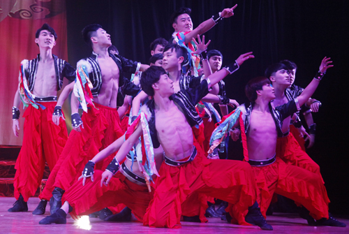 伴随着欢快的乐曲声,郑翔、甘筱青等校领导走上舞台,与演员们亲切握手,祝贺他们演出取得圆满成功,并合影留念。