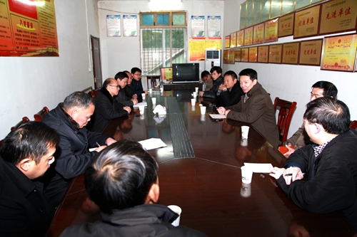 在官莲乡东山村委会会议室,郑翔书记与县、乡、村领导进行了调研座谈。他首先听取了东山村支部书记彭仁训和官莲乡党委书记李刚关于东山村的基本情况介绍,以及为什么将东山村定为“贫困村”原由和如何把村有经济做起来,帮助他们脱贫致富,在农业产业化、教育、医疗卫生、公共基础设施等方面进行帮扶的几点原望。随后,又听取了武宁县县长郭晓明就合作开展帮扶贫困村工作的意见建议。郭晓明县长认为,高校更重要的是人才优势,因此,下一步的帮扶工作重点是:第一,将东山村自然资源优势与学校人力资源优势结合起来。请学校给东山村做一个相对长远的规划,这个规划县里也参与进来。第二,吸引社会资金在项目上给予支持。县级层面主动介入,包括乡、村,也要靠自力更生,逐步来解决脱贫致富的问题。先把急于解决的贫困户筛选出来帮扶,使其尽快脱贫。通过规划引领、项目建设、人才培养,发挥综合优势,形成全社会帮扶合力,最终使“贫困村”致富。