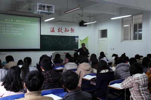 课堂上,熊建春老师围绕课本内容,重点介绍了统计学中的基本概念及分科,并通过案例穿插简要介绍了统计学的产生、发展及其现实意义,使同学们通过第一课就对统计学有了一个大致的了解。上课过程中,熊老师与学生互动交流,课堂气氛活跃。王副校长坐在学生中间,聚精会神地听讲,认认真真地记笔记。
