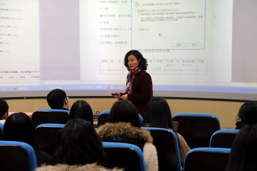 本节实训课,王丽霞老师首先简要介绍了空乘服务人员仪态仪表、服饰穿着与搭配的有关知识及注意事项,重点讲解,并示范了站姿、走姿、握手、行礼、指示等空乘服务人员应遵循的标准姿势姿态。在随后的实训环节,王老师要求学生按要求演练相关姿态和动作,并对存在的不足予以点评和纠正。整节课气氛活跃、教学效果良好。