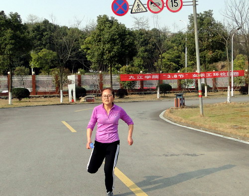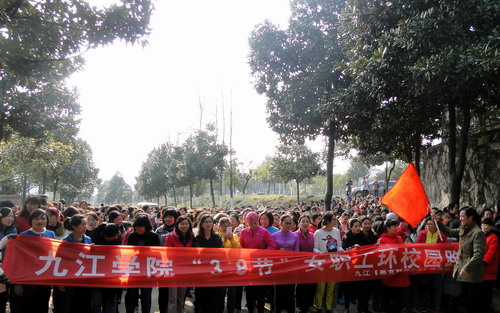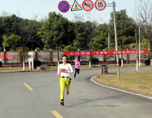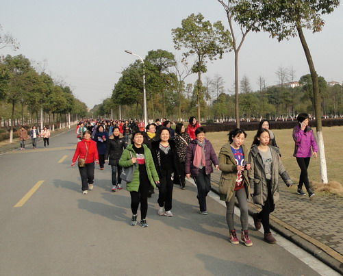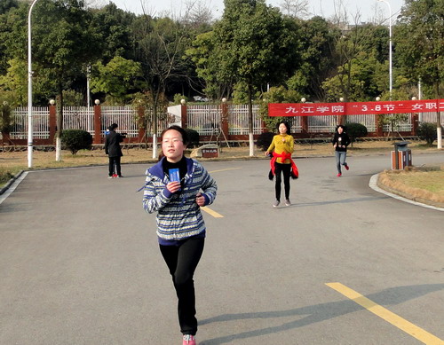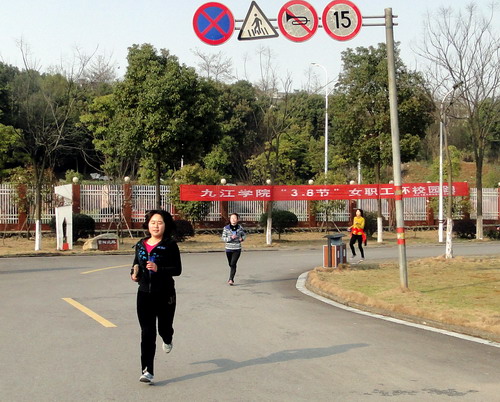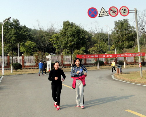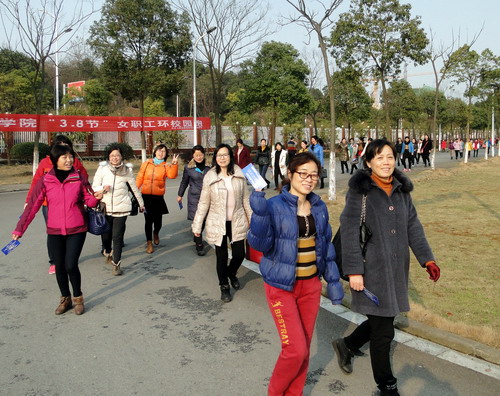 人奋发向上、团结一致的精神。虽然气温较低,寒气袭人,但是广大女教职工们在这个属于自己的节日里,参与活动的热情丝毫不减,她们一路欢声笑语,一直坚持到了环跑线路的终点。
