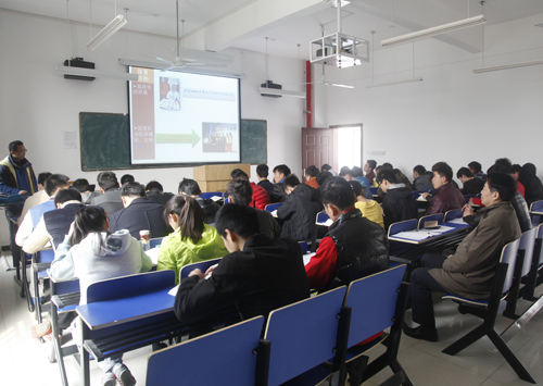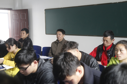 在八里湖校区综合楼322教室,郑翔书记与体育A1412班的同学们一道听取了刘小平副教授讲授的《体育概论》课程。郑书记充分肯定了刘老师的授课方式与教学效果,称赞刘老师的授课有三个方面值得肯定:课前组织教学,对课堂纪律进行了约束;课件制作精美;教学全程与学生保持活动,充分调动了学生听课积极性。