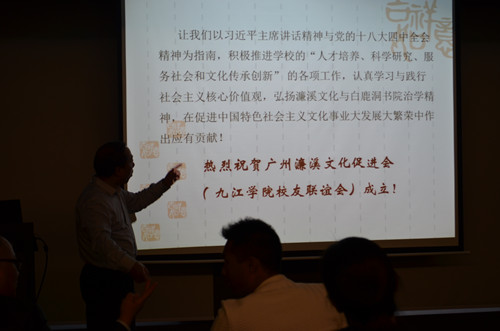 讲座中,甘校长对中国特色社会主义文化发展道路与濂溪文化进行了重点阐释,并对濂溪文化、白鹿洞书院与我校的办学理念进行了分享。最后,甘校长祝贺我校广州濂溪文化交流促进会(