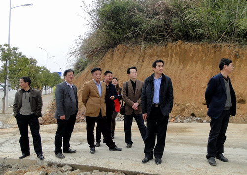 在听取保卫处负责人关于新天地在建工程靠学校一侧有坍塌现象时,杨副校长一行又来到现场察看情况。要求保卫处密切关注事情进展情况,如果有影响到校园安全的情况,要及时向学校报告,切实维护学校利益和校园安全。