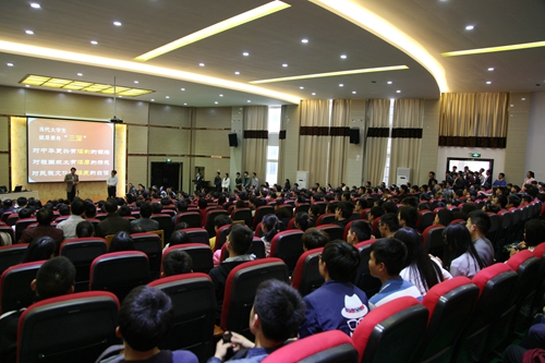 香远楼三楼报告厅,第十二届全国人大代表、贵州大学校长郑强教授带来了一场题为《中国梦·中华复兴之梦——当代中国教育与国人价值取向》的励志报告。在家校领导与1000余名师生一起聆听了演讲。讲座由校党委书记郑翔主持。