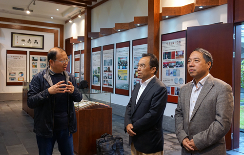 讲座前,校长甘筱青陪同沈国放到两南山参观了陈寅恪展览馆。