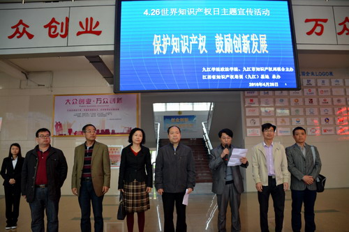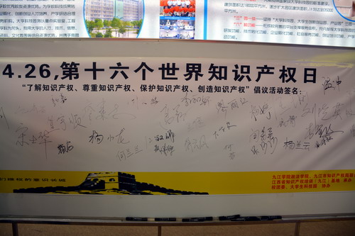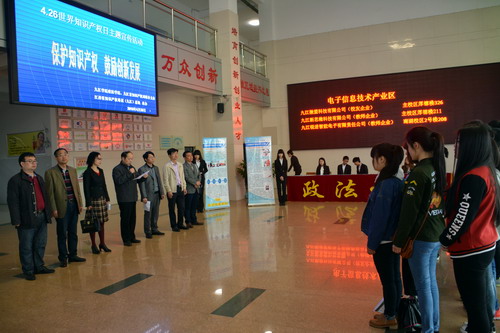 为了推进以“了解知识产权、尊重知识产权、保护知识产权、创造知识产权”为核心的知识产权文化建设,4月26日正值第十六个世界知识产权日,政法学院和九江市知识产权局在我校大学科技园,面向入园企业和学校师生开展了以“保护知识产权、鼓励创新发展”为主题的4.26世界知识产权日主题宣传活动。