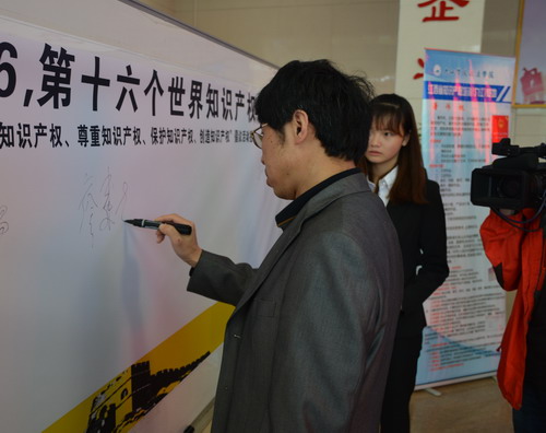 根据活动的策划与安排,全体活动参与者首先在“了解知识产权、尊重知识产权、保护知识产权、创造知识产权”的倡议横幅上进行了活动签名,各位领导、企业代表和师生随后观看了活动宣传介绍和活动展板、听取了企业知识产权相关知识的介绍。政法学院学生还深入园内企业发放知识产权宣传册、进行了“企业知识产权保护”的主题宣传。政法学院李军政副教授(知识产权博士)在现场为科技园入园企业提供有关企业知识产权保护的现场咨询服务、进行答疑解惑,相关企业详细咨询了企业商标注册、专利保护的政策和相关法律规定。