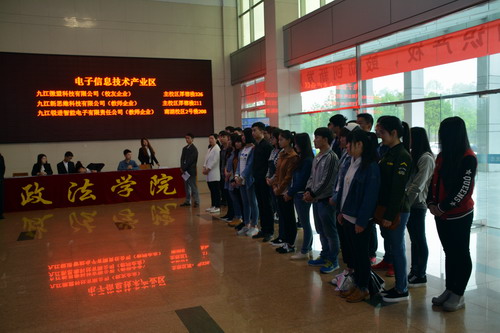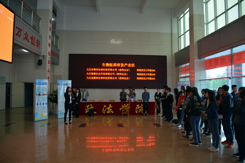 我校副校长纪岗昌、九江市知识产权局副局长刘晓英、政法学院院长詹建志、政法学院党委书记高翔、校团委书记闫来英、科研处副处长宋士华出席了此次活动。政法学院李军政博士现场为入园企业提供了知识产权的相关咨询。九江电视台法制频道对活动进行了全程报道。