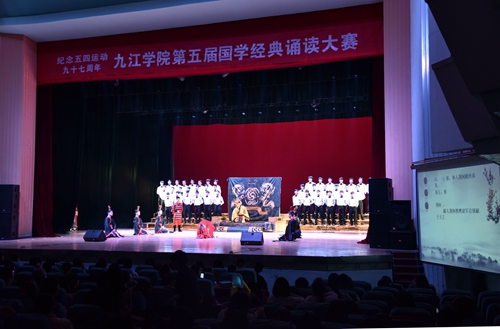 5月4日晚, 纪念五四运动97周年暨第五届大学生国学经典诵读大赛在主校区大礼堂举行。本次比赛旨在培养大学生的爱国情操,传承经典,贯彻落实学校三大特色教育和“一二七”计划。我校党委书记郑翔、九江职业大学党委书记王原平,我校副校长吴桃娥、纪岗昌、王万山,校纪委书记魏立平与1000余名师生观看了大赛。