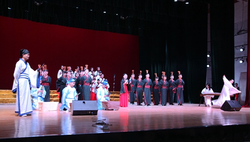 旅游与国土资源学院的《石壕吏》、外国语学院的《破阵子》、护理学院的《洛神赋》、电商学院的《孔雀东南飞》、政法学院的《劝学》等都以独特的表现形式诠释了他们对这些经典篇目的理解,赢得观众们阵阵热烈的掌声。