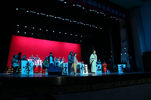 会计学院的《论语》通过孝、礼、信、仁、廉等几个短剧,伴着论语中有关的名篇诵读,展示了经典文化在当今社会的教化意义;土建学院的《咏荆轲》用影子舞和齐诵渲染出荆轲不畏强暴、义无反顾的慷慨悲壮之举;艺术学院的《明月几时有》伴着京剧吟唱,优美的舞蹈营造出唯美的意境。临床医学院的《扁鹊见齐桓公》将医学、医道融入其中,生动演绎了医者独有的医德医术。