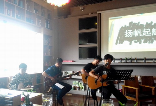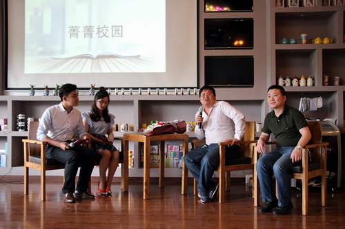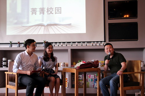 做客首期创青春主题沙龙的嘉宾是校友曹振华。主持人吕坤阳、严菲儿和嘉宾围绕“大学校园的众创时代”主题,分菁菁校园、扬帆远航、众谋创业三个板块展开了访谈。曹振华2005年毕业于我校电子工程学院,2009年创办的江西为易科技发展有限公司是目前江西地区最大的互联网服务提供商之一。他回忆了自己在母校的成长过程,讲述了在百度、阿里巴巴等大公司辛苦打拼,回乡创业的青春奋斗之路,分享了他的创业经验,一一回答了观众关于创业的问题。他大学时期的班主任杨保海老师也作为嘉宾上台助阵。访谈的每个板块间隙,由乐队现场演唱校园民谣。在轻松愉快又充满青春气息的氛围中,嘉宾和观众进行了生动活泼和深入热烈的互动交流。大家通过倾听观点、倾听心声,分享知识、分享历程,答疑解惑、辅导人生。带来一场别样的思想碰撞。