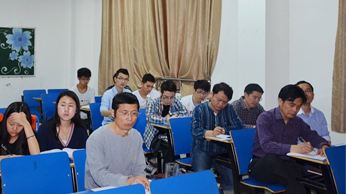5月27日上午,杨耀防副校长来到义丰楼412教室,听了经管学院中英合作班外籍教师Andrei Munteanu 讲授的《商务环境》课程。国际交流学院院长夏修龙,经管学院院长潘旭华、党委书记花金龙等一同听课。