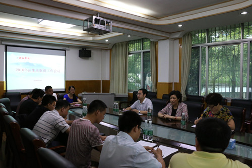 为了更进一步做好2016年招生录取工作,6月29日下午,学校招生工作领导小组下设的录取组在二号行政楼三楼招生与就业处会议室召开工作会。学校招生工作领导小组组长、副校长吴桃娥到会并讲话,录取组全体成员参加会议,录取组组长、招生与就业处处长肖国丰主持会议。
