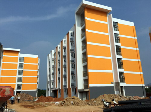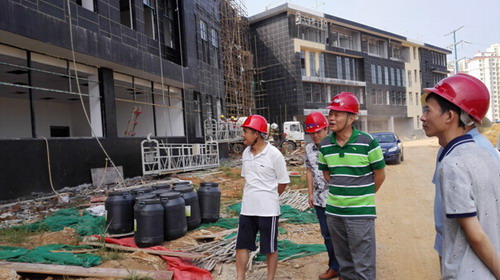 目前工程已经进入最后的冲刺阶段,工地上一片热火朝天的景象,工程进展非常顺利,现正在抓紧进行装修工程和室外配套工程。