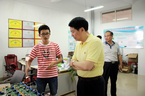 郑书记还到九江新思维科技有限公司、九江惠康电子科技有限公司,九江馨玫影视科技有限公司,九江智造科技有限公司看望了正在准备创新创业比赛和实施横向项目的师生,询问了魏启明老师参与实施横向项目学生的工作和生活情况等。