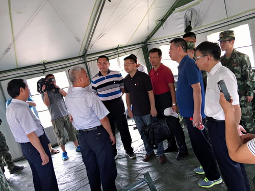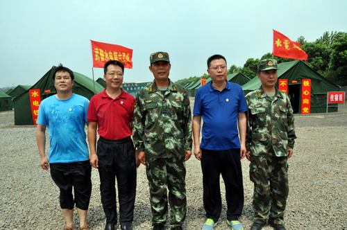 慰问期间,恰逢市委书记杨伟东,市委副书记、市长林彬杨莅临武警水电部队抗洪指挥部现场,与各位盟员亲切握手,在听取了大家的简单汇报后,杨书记和林市长对民盟九江市委和民盟