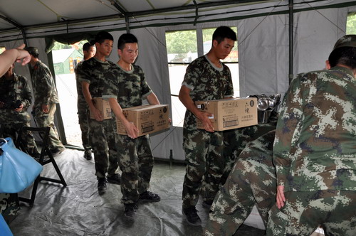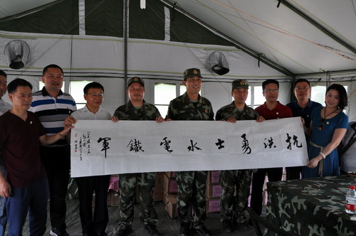 委员会等慰问团向武警水电部队捐赠了救灾物资。