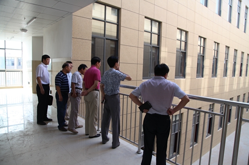 之后,郑翔书记来到艺术学院院长办公室,听取了该院院长吴维勇,党委书记王春生,副院长虞斌、欧阳时来,以及基建处处长齐清波、副处长陈志荣等有关工作情况汇报。郑翔书记首先肯定了艺术学院新学期第一课的教学秩序,以及该学院和基建处为之付出的努力。同时,他还强调点了几点:一是要做好教室走廊、大厅等环境卫生;二是未完工的基建项目的施工,应放在八小时以外,避免影响上课秩序;三是抓紧上下课铃声和多媒体设备的调试,以及教室电风扇的安装等工作;四是食堂启动中餐供应;五抓好安全工作。晚上自习同学们必须结伴而行,晚上9点30分所有人员集体离开教学楼。同时要安排好辅导员和学生干部值班工作。最后,郑翔书记还一一察看了音乐、舞蹈教室等建设完工和投入使用的情况