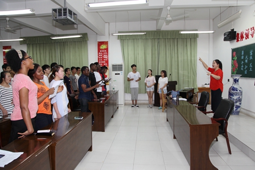 郑翔书记首先来到主校区香远楼看望了由外国语学院、机材学院和国际交流学院等二级学院学生组成的合唱队,听了他们合唱的《长征组歌》,并亲自示范唱法,讲解了曲目背景以及感情、节奏等方面的把握也给予了指导。该合唱队有不少外国留学生参与。随后,郑翔书记前往文友楼、艺术学院、工会、望庐楼和竞知楼等排练现场,看望了另外几支合唱队的师生,并在听完他们合唱的《长征组歌》后,一一给予了点评。郑翔书记对各合唱队在时间紧、任务重、标准高的情况下取得的教唱效果给予了充分肯定。
