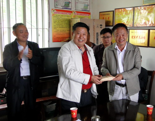 座谈结束后,杨焱林还向东山村和官莲乡送去了慰问金,并向东山村捐赠了一批图书和书柜,向官莲中学赠送了200套课桌椅和200张上下铺床。在结束对东山村的视察后,杨焱林一行还专程赴官莲乡政府进行了调研。