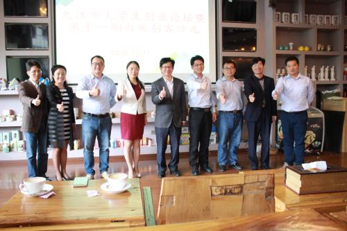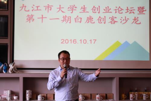 为响应国家和省市大众创业万众创新活动周,10月17日,九江市大学生创业论坛暨第十一期白鹿创客沙龙活动在学校大学科技园靠谱青年创客咖啡举行。活动由共青团九江市委员会和学校大学科技园、校团委、校友办联合举办。活动邀请 优秀校友、九江微盟信息技术有限公司创始人王堃做了“浅淡移动互联网经济及大数据应用”的主题报告。活动由文传学院播音与主持专业A1552班魏依萍、赵鑫铭同学主持。