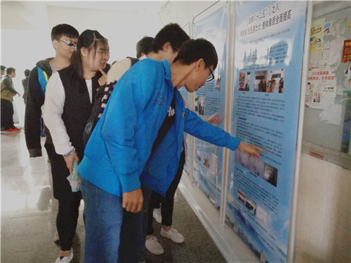 中午,为将学校的这份斐然成绩向学校的重要组成力量——学生传播,实现正能量与激励教育,电子工程学院组织广大党员、学生干部、部分大一新生代表前去展览现场观看。同学们依次有序浏览学校各项工作成果展板,他们从大局、宏观层面了解了学校发展的进步,他们胸有成竹、激情澎湃,他们充满渴望、自信满满,他们为自己是