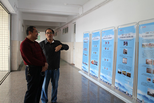 上午,在电子工程学院院长高小英和党委书记孙小明的领导下,全体行政管理岗和各教研室教师来到竞知楼一楼,观摩本次“回眸十二五”专题展。各领导、教师,一边学习,一边讨论学校近来的发展,在频频交流中,大家对更加清晰深入地认识到,学校的科研实力显著提高、科技园蓬勃发展、教育教学水平不断提升、师资队伍逐渐壮大、办学条件日渐改善、特色教育茁壮成型、