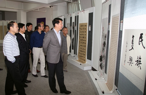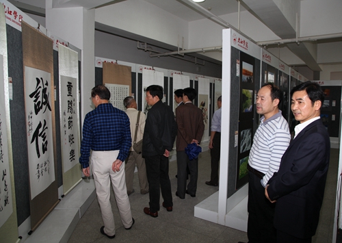第六届教职工金秋书画摄影展在逸夫楼书画展览厅拉开帷幕。在家校领导郑翔、纪岗昌、陶春元、杨焱林、魏立平和杨耀防,以及宣传部、工会、离退休职工管理处、艺术学院、老年文学艺术协会等部门负责人、师生代表观看了本次展览。