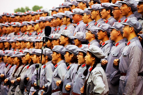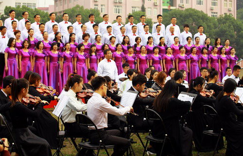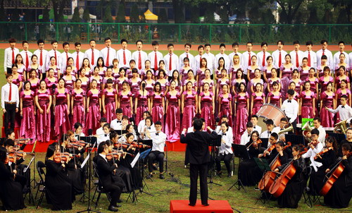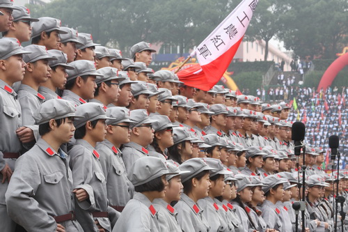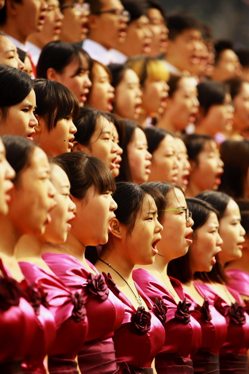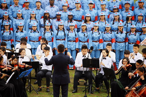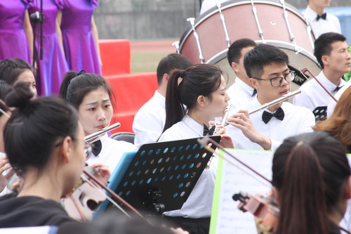 开幕式结束后,3支学生代表队和1支教工代表代表队现场为师生们带来了我校《长征组歌》大型合唱音乐会上的四首经典曲目。娴熟的指挥、专业的现场伴奏、激昂高亢的歌声深情表达了在峥嵘岁月里中国工农红军所拥有坚定理想信念,也赢得了在场所有观众的掌声和欢呼声。