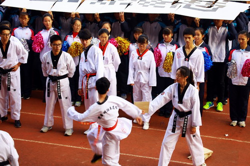 运动员代表队和裁判员代表队依序入场。有的伴着明快的音乐翩翩起舞;有的随着舒缓的节奏进行才艺表演;有的带着大型道具娓娓“道”来;裁判员方阵和教师代表队方阵则铿锵有力,严肃整齐的步伐中也带着一丝难掩的笑容。各个方阵各展其长、特色鲜明的演绎充分体现了当代大学生开放、包容、乐观、蓬勃的特性。