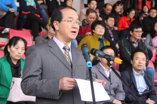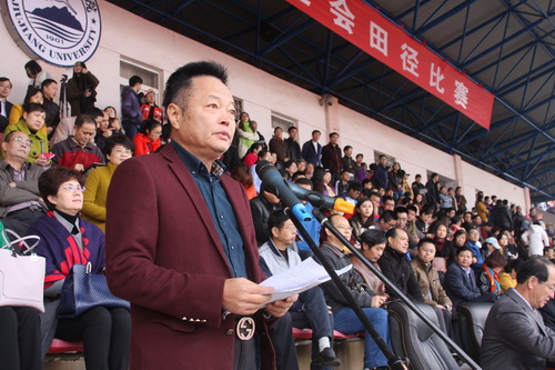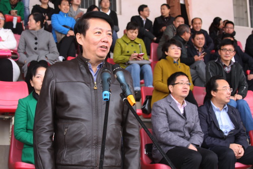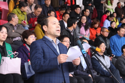 纪岗昌副校长希望运动员能体验竞赛的乐趣、诠释体育的精神、弘扬和谐的理念;希望裁判员公正无私、一丝不苟;希望工作人员做好服务工作;希望广大师生讲文明、讲秩序、讲团结、讲奉献。最后,他预祝运动员取得优异成绩!预祝运动会取得圆满成功!
