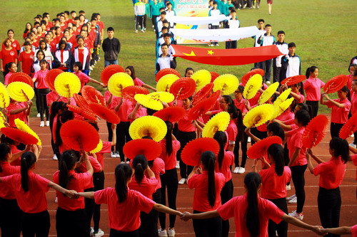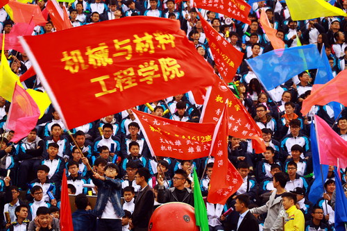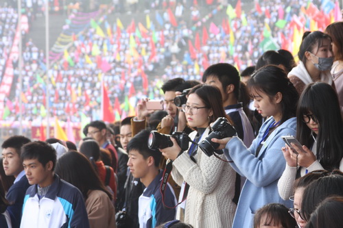 恰同学少年,风华正茂;逢金秋暖阳,仪态万方。11月3日,主校区南区田径场内红旗飘扬,彩旗招展。我校第十五届运动会开幕式在此隆重举行,在家校领导郑翔、纪岗昌、陶春元、杨焱林、杨耀防、夏启国出席,陶春元副校长主持开幕式,各二级学院党政负责人、各职能部门负责人以及教师、运动员代表、全体2016级学生参加开幕式。