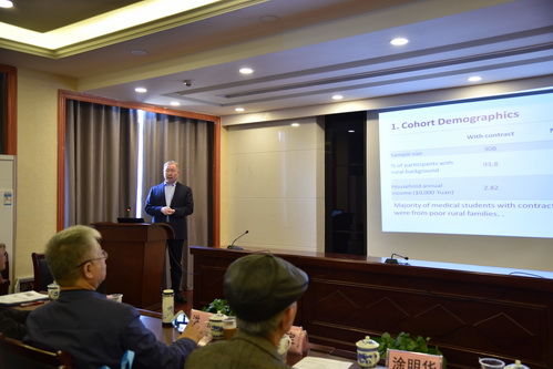北京大学中国卫生发展研究中心刘晓云博士介绍了定向医学生培养政策评估研究的最新进展。通过对甘肃、青海、九江和赣南四个地区农村定向医学生开展队列研究,就履行合同情况和实际基层工作时间进行了广泛调研。初步结果显示定向医学生有关政策设计符合国际经验做法,执行情况良好,但也存在一些问题,比如学生对有关政策、费用、合同及毕业后服务期限等内容不熟悉,建议在学生入校时加强相关政策教育。